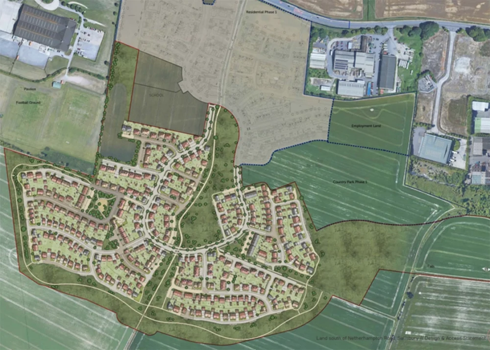 Thrive Architects put together plans on behalf of Vistry Western to build the 406 houses on land south of Netherhampton Road near West Harnham in Salisbury.