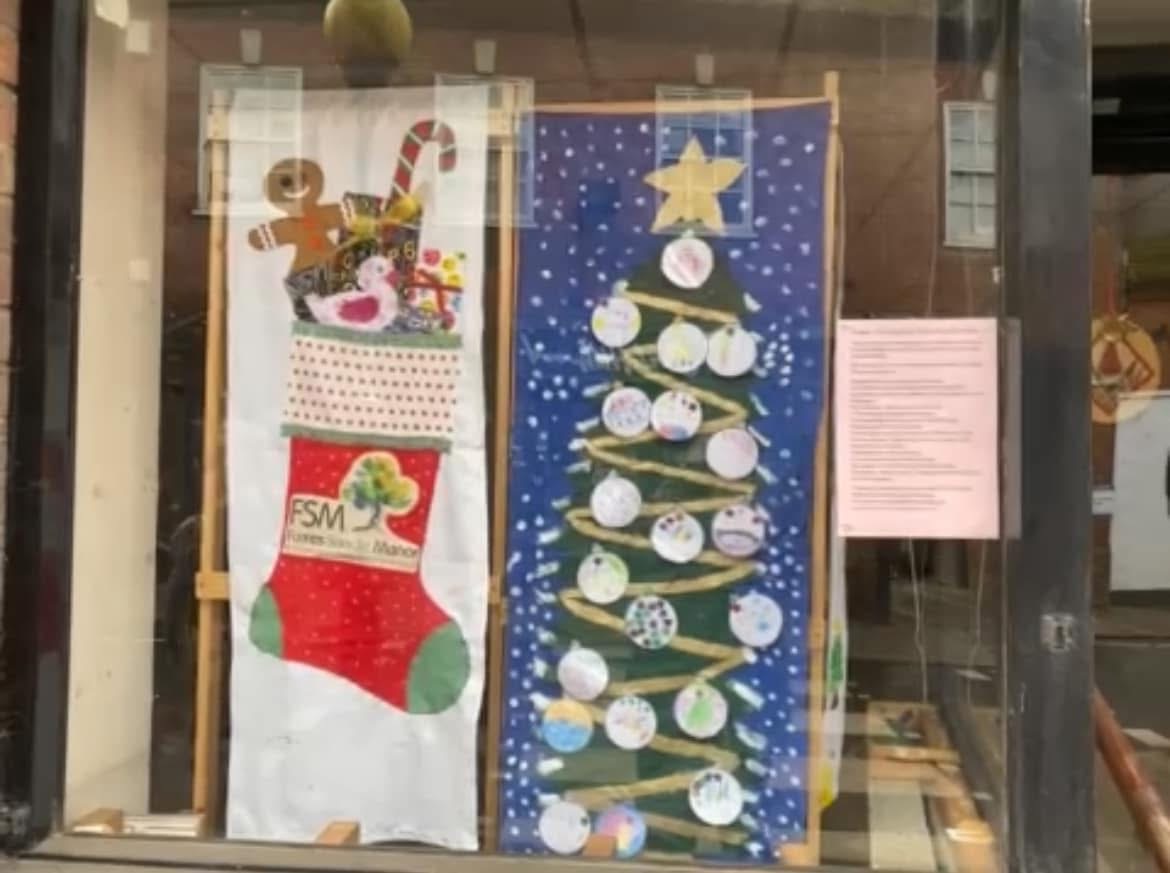 “Currently, they display festive Christmas artwork created by local school children and youth groups.