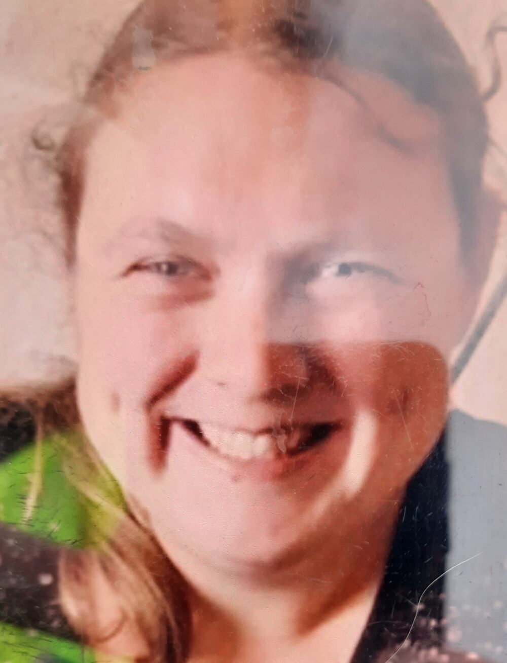 She is described as white, around 5ft 6ins tall, heavy build, with long brownish hair often worn in a ponytail.