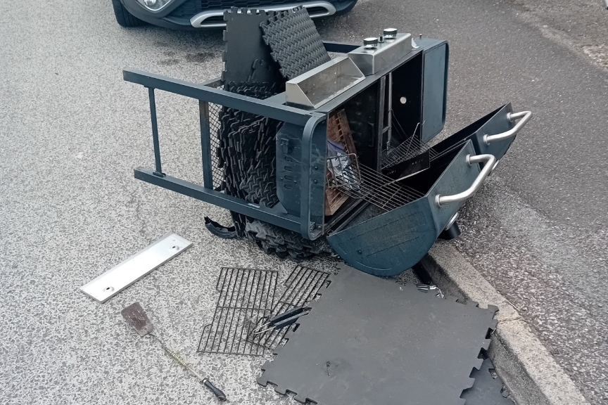 The incident was reported after CCTV captured a large barbecue and other items falling out of a moving van on Telford Road on Churchfields Industrial Estate.