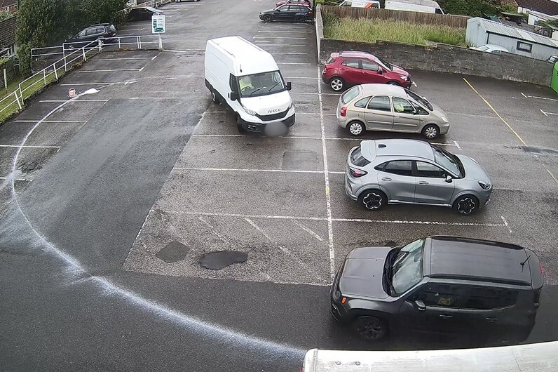 The incident occurred at Warminster Road car park in Westbury where CCTV captured a man stopping his vehicle and later driving away, leaving behind a large can and a trail of spilled paint.